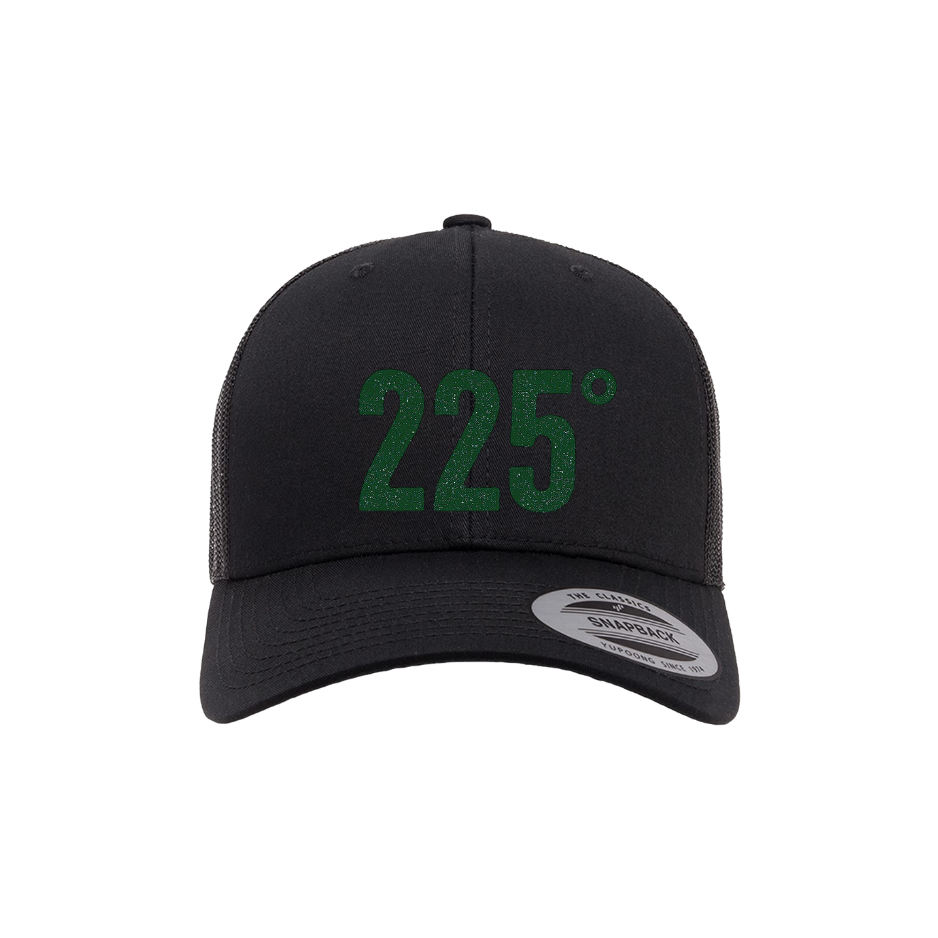 A retro trucker hat with a bold, vintage-inspired front graphic that reads “225°” in a textured forest-green print. Designed with a structured six-panel crown and a breathable mesh back, this cap brings a lived-in, outdoorsy energy to everyday wear. The mid-profile silhouette and Permacurv® visor hold their shape while offering a comfortable fit, and the polyester-cotton blend keeps the fabric smooth and soft to the touch. It slips into the rhythm of weekends spent trail scouting, riverside drives, and evenings around a low campfire—wear it when you want a little grit and green in your look.