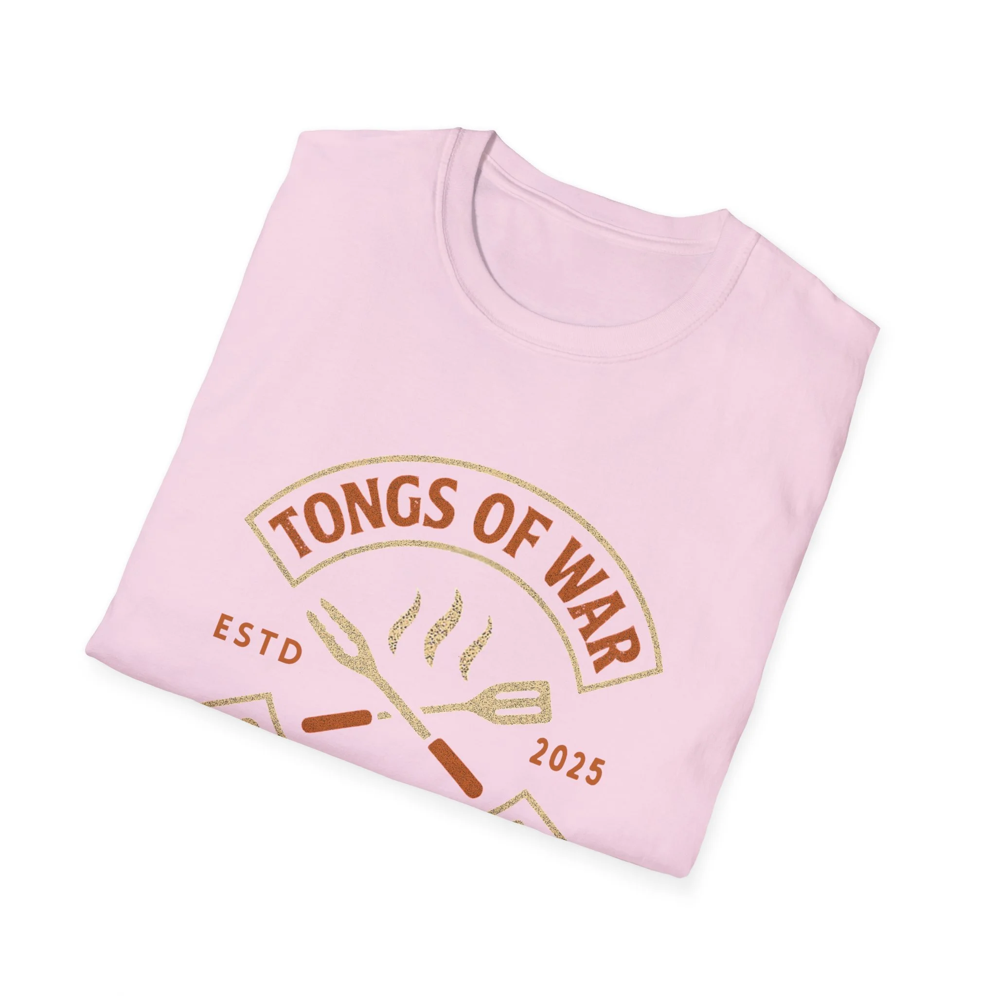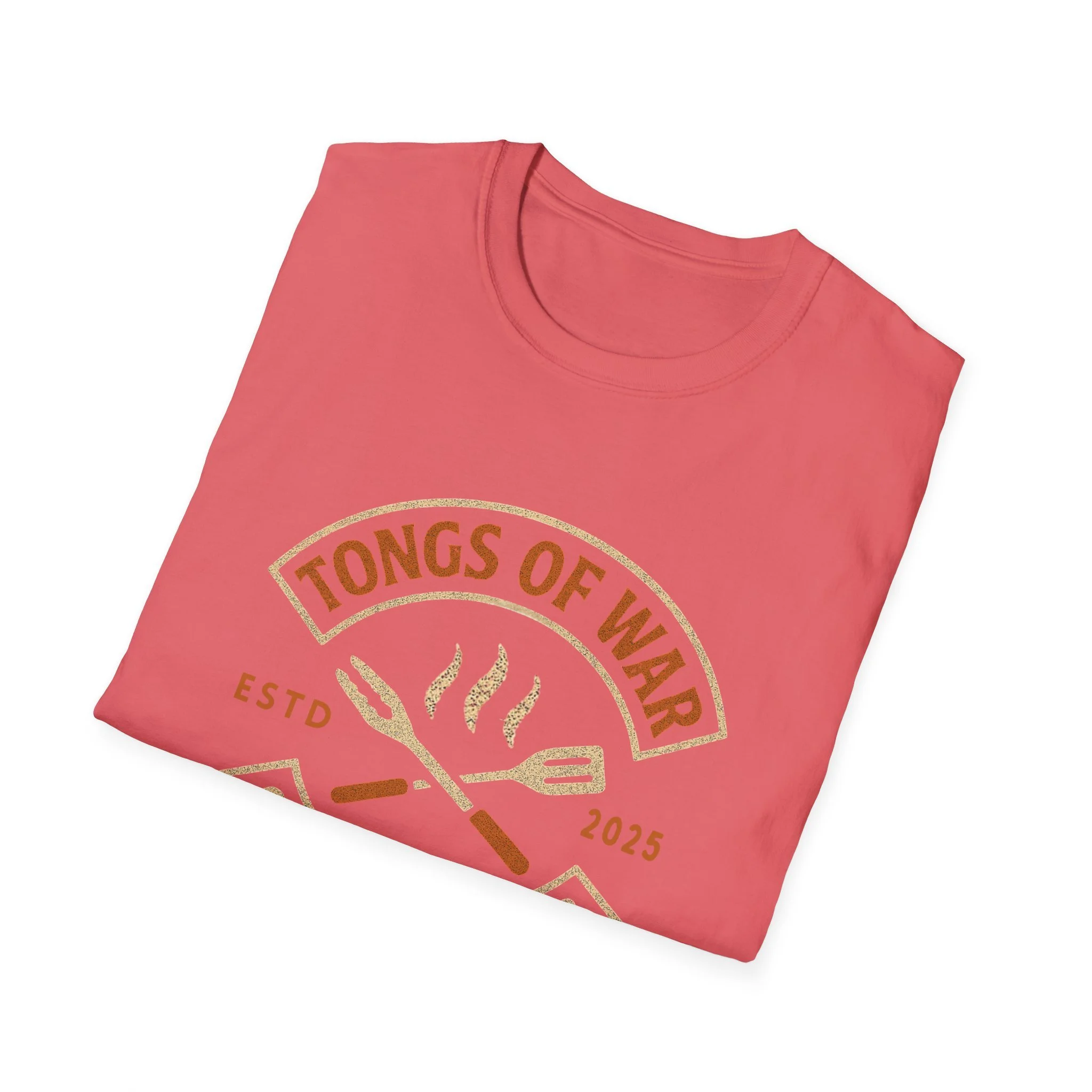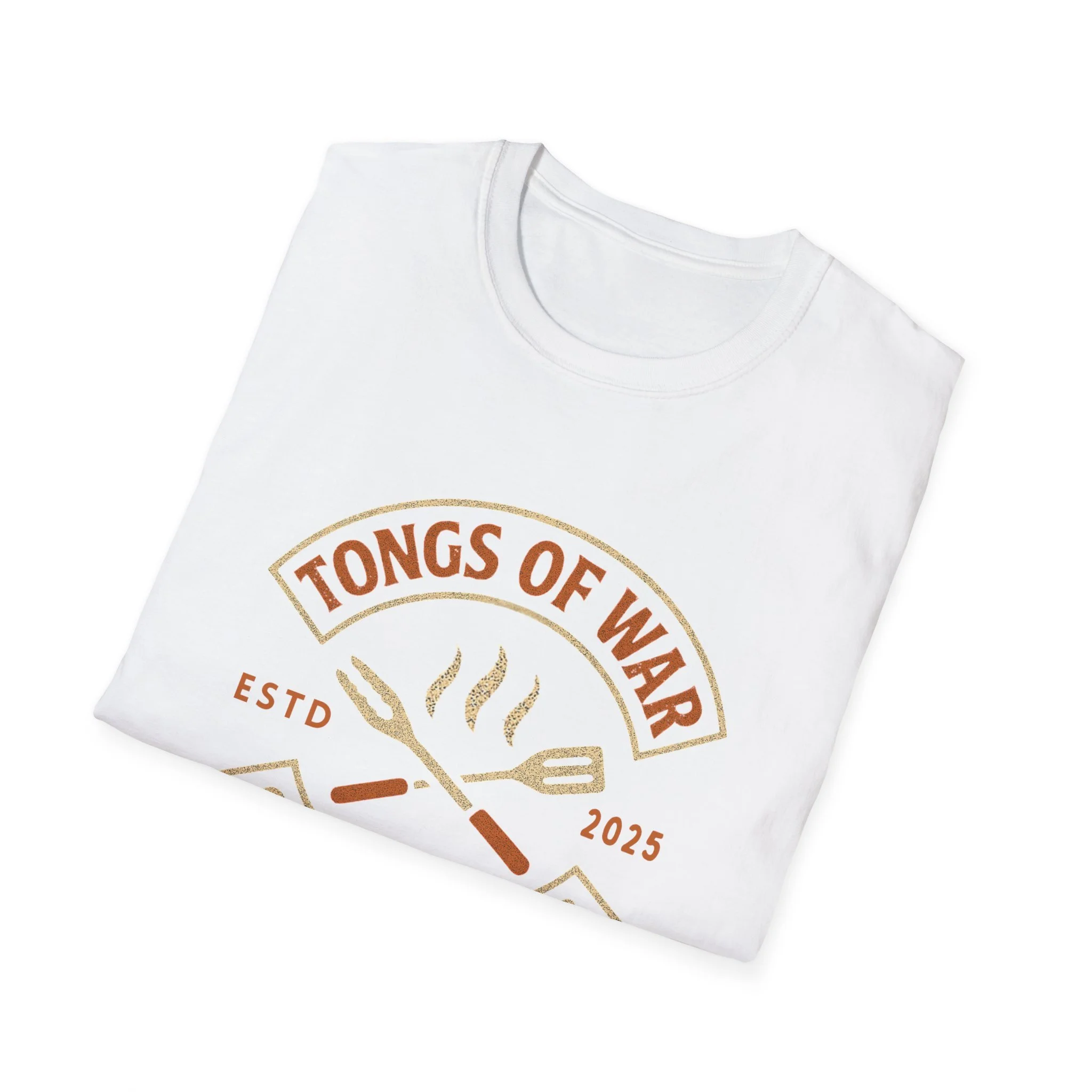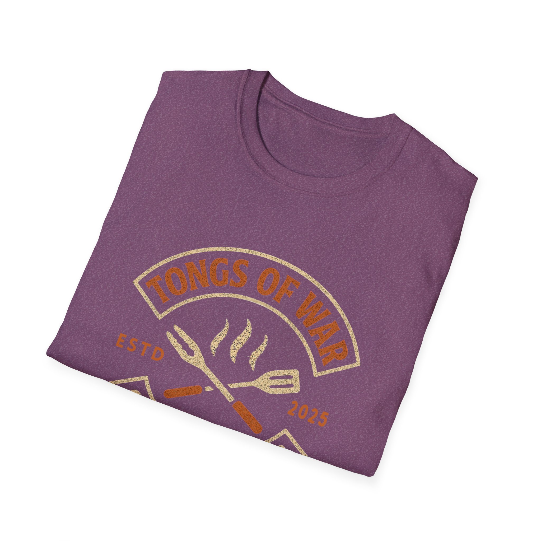 Lightweight and breathable, this crew-neck tee carries a warm, backyard-grill energy: a retro emblem reading “Tongs of War — Grilling Club” sits over crossed spatula and tong icons with gentle steam lines. The soft ring-spun cotton feels smooth against the skin and drapes casually for relaxed weekends by the smoker or evening cookouts. Subtle vintage tones in the print give it an effortless, lived-in look while the tear-away label and stable shoulder tape keep it comfortable through long summer hangs. Wear it to rounds of burgers and ribs, to neighborhood cookoffs, or when you need a reliable tee that quietly announces you take your grilling seriously.
